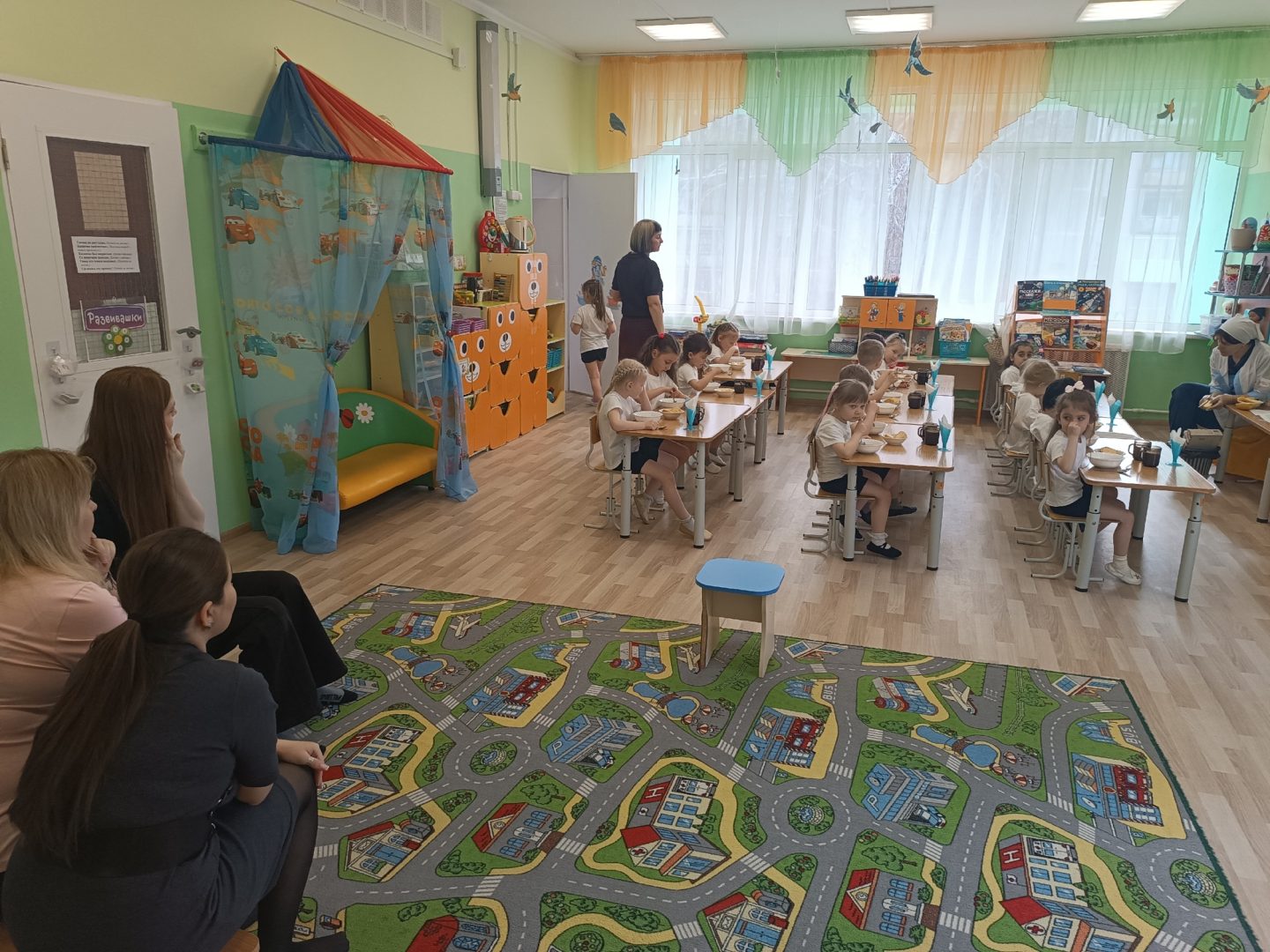 Сразу после завтрака начался блок открытых занятий. Родители смогли увидеть «педагогическую кухню» изнутри: как их дети учатся рассуждать, считать, делать свои первые открытия. Было заметно, как ребята старались показать свои успехи самым важным зрителям в их жизни.