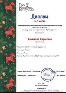 Грамоты, дипломы, благодарности, сертификаты 2021