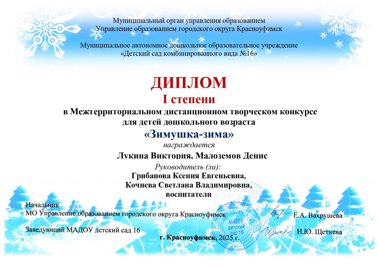 Грамоты, дипломы, благодарности, сертификаты 2024-2025